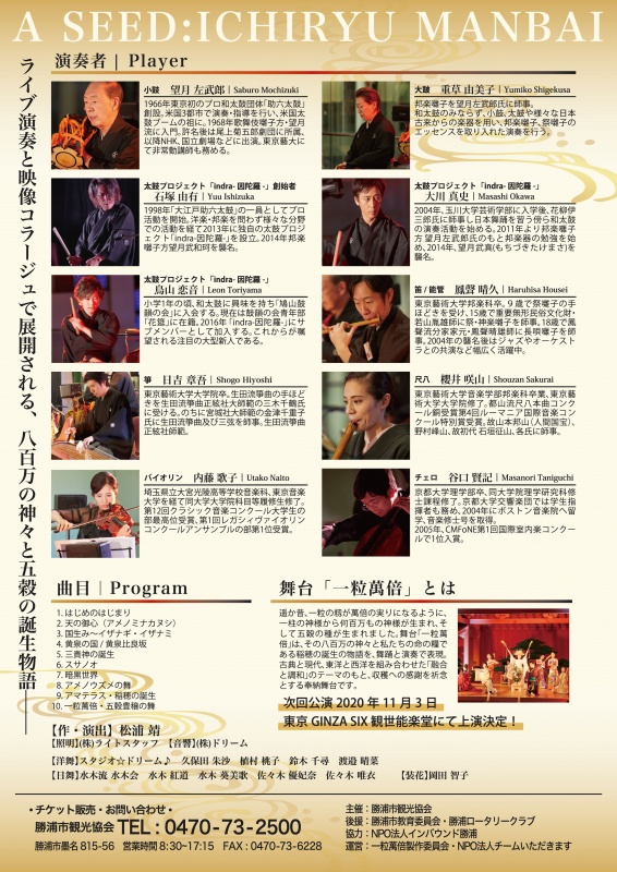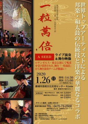 令和2年1月26日(日)、勝浦市芸術文化交流センター(キュステ)にて奉納舞台「一粒萬倍」(いちりゅうまんばい)が上演されます。